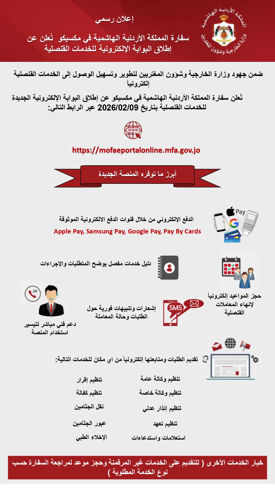 Anuncio La Embajada del Reino Hachemita de Jordania en México y los países para los que es concurrente (Belice, Costa Rica,...